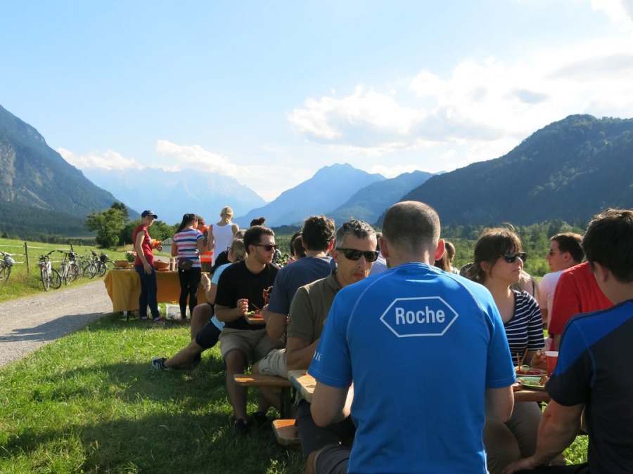 Organisation einer Fahrradtour mit 50 Mitarbeitern von Roche Diagnostic. Verleih von 50 Fahrrädern, Catering, Planung, Führung...